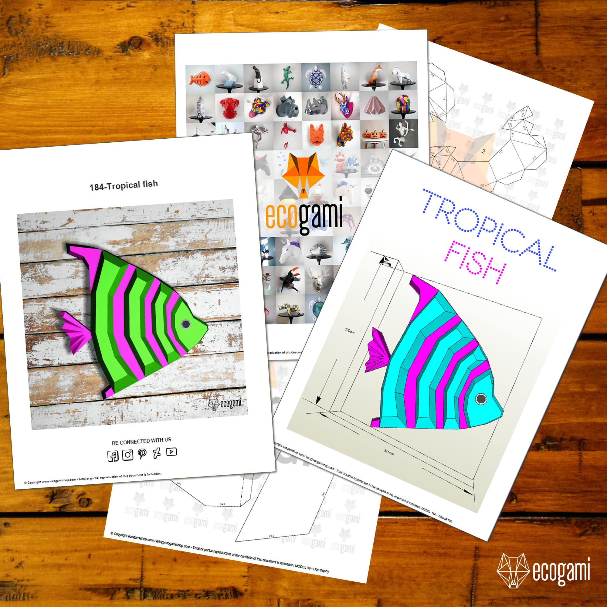 Papercraft poisson tropical mural en origami 3D