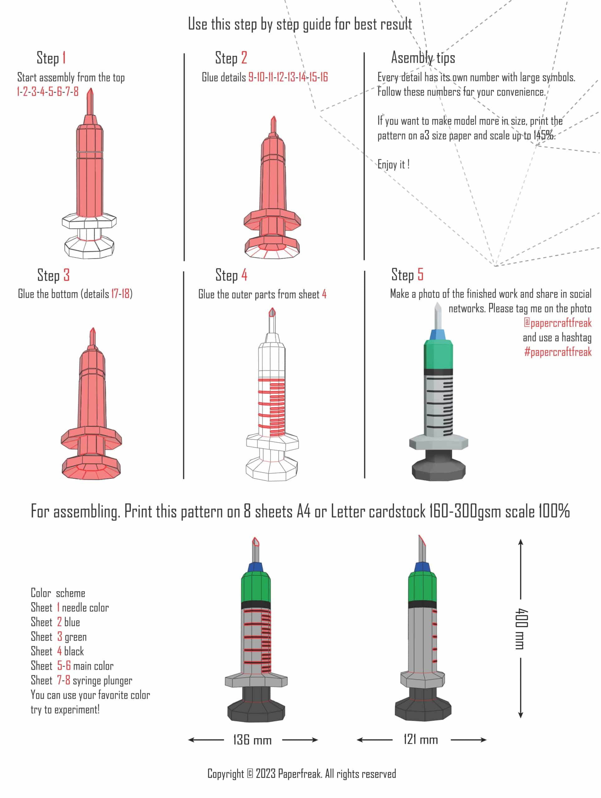 N’attendez plus pour commencer votre projet de papercraft seringue médicale. Que vous soyez un passionné de loisirs créatifs, un décorateur à la recherche d’objets originaux ou un parent souhaitant partager une activité éducative avec vos enfants, ce modèle est fait pour vous. Commandez dès maintenant et laissez libre cours à votre créativité !