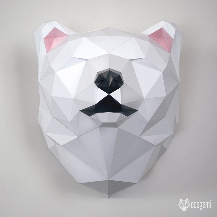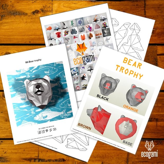 Papercraft tête d'ours murale en origami