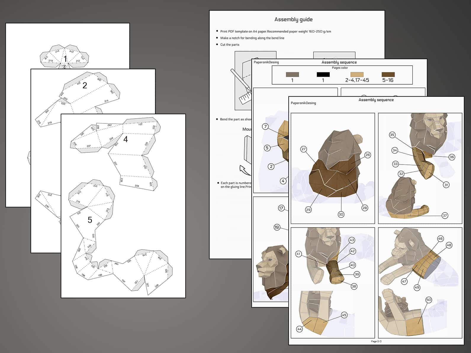 Avec ce modèle papercraft PDF d’un petit lion allongé, c’est toute la majesté d’un jeune roi de la jungle qui entre dans votre maison – mais en version ultra mignonne ! Sa posture allongée et détendue lui donne un air paisible, parfait pour une décoration originale pleine de caractère.