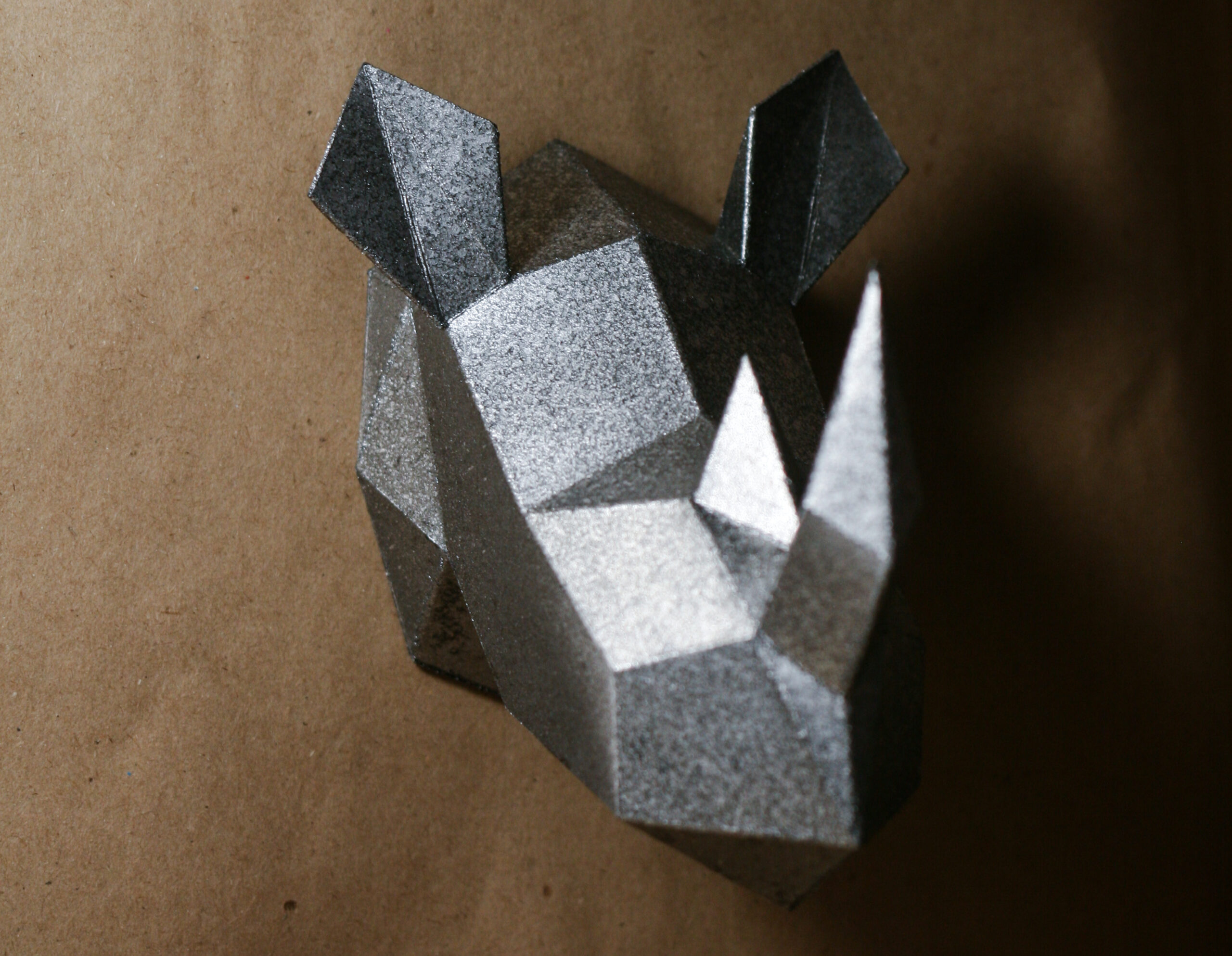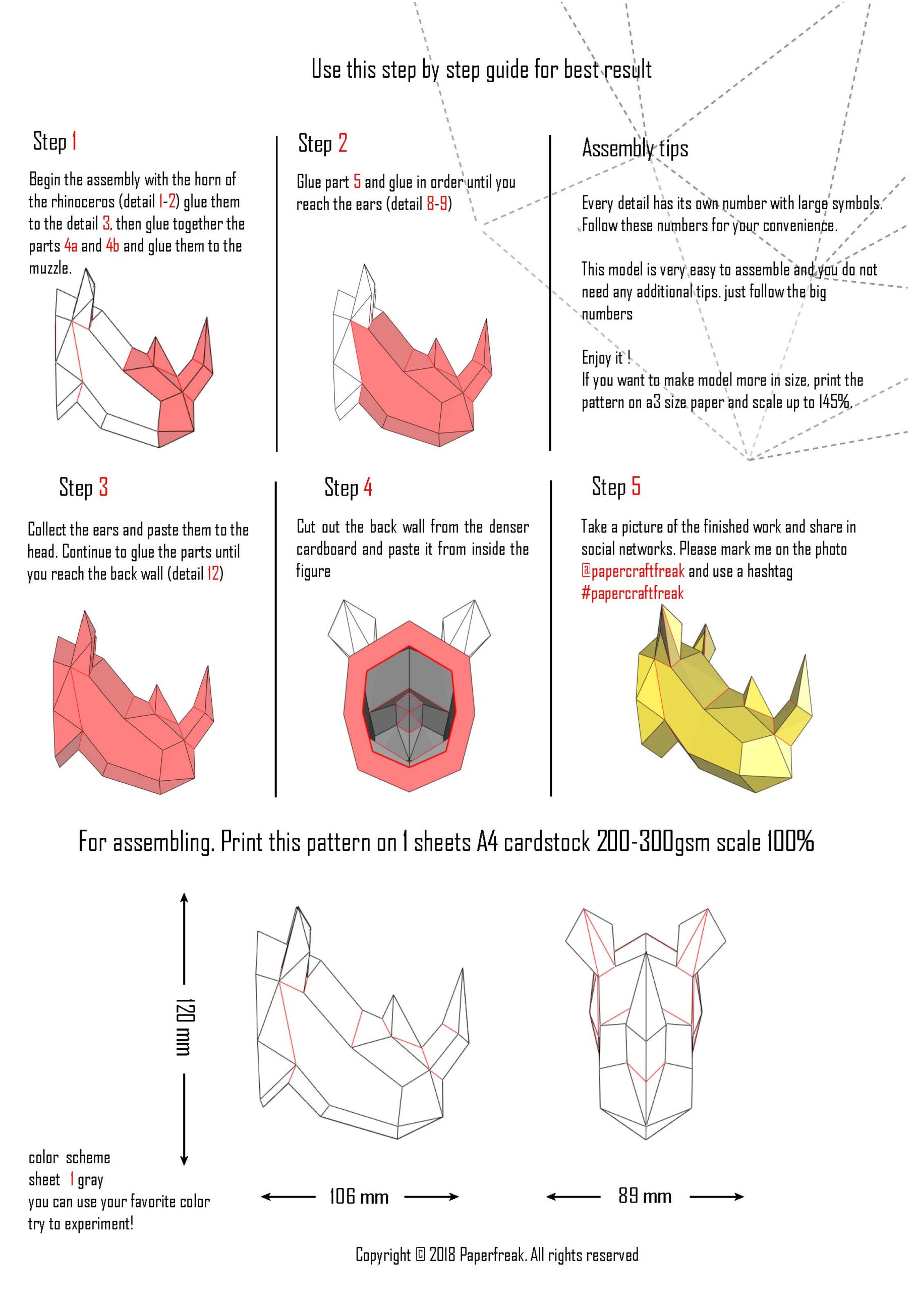 Impressionnant et compact, ce petit trophée tête de rhinocéros en papercraft 3D est une sculpture DIY à assembler vous-même, idéale pour une décoration de frigo ou une mini tête murale pleine de caractère. Son look low poly moderne et sa silhouette emblématique en font une pièce à la fois fun et décorative.