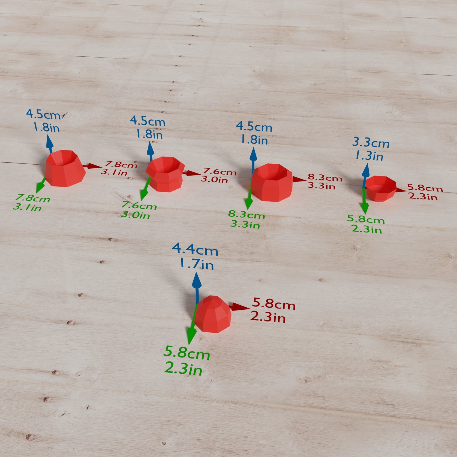 | Tops | 5,8 cm / 2.3 in | 4,4 cm / 1.7 in | 5,8 cm / 2.3 in |