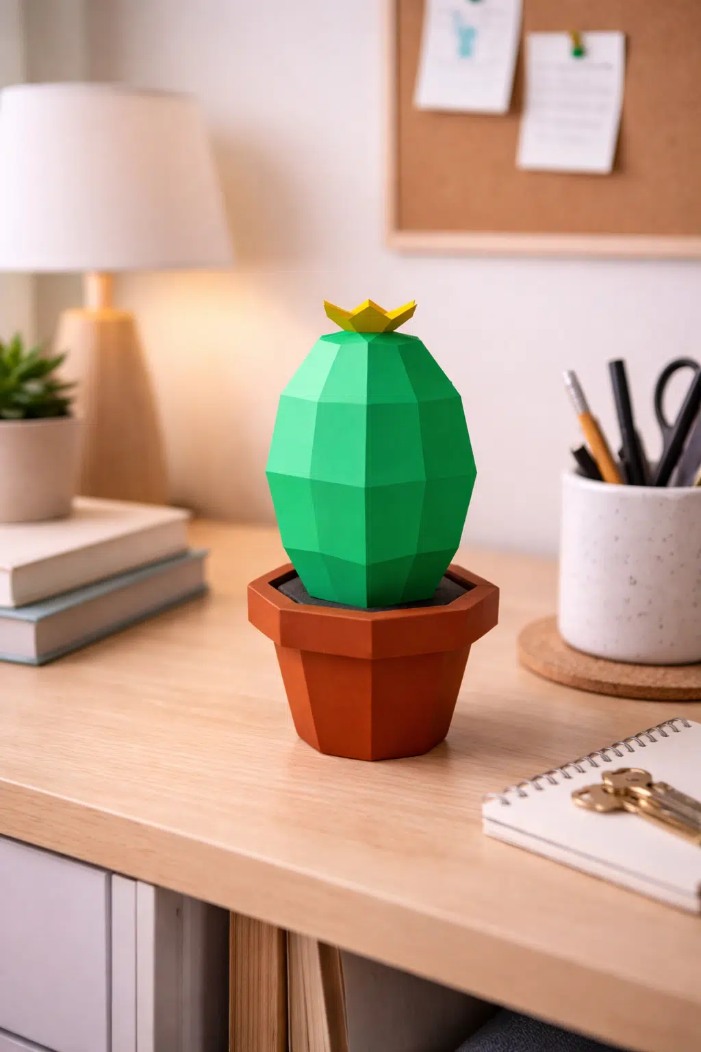 Grâce à son esthétique low poly, ce modèle s’intègre naturellement dans une déco scandinave, japandi, contemporaine ou minimaliste. Les facettes structurent l’objet, tandis que les fleurs apportent la douceur et la couleur. Le contraste est harmonieux : un équilibre entre lignes nettes et sensation organique.