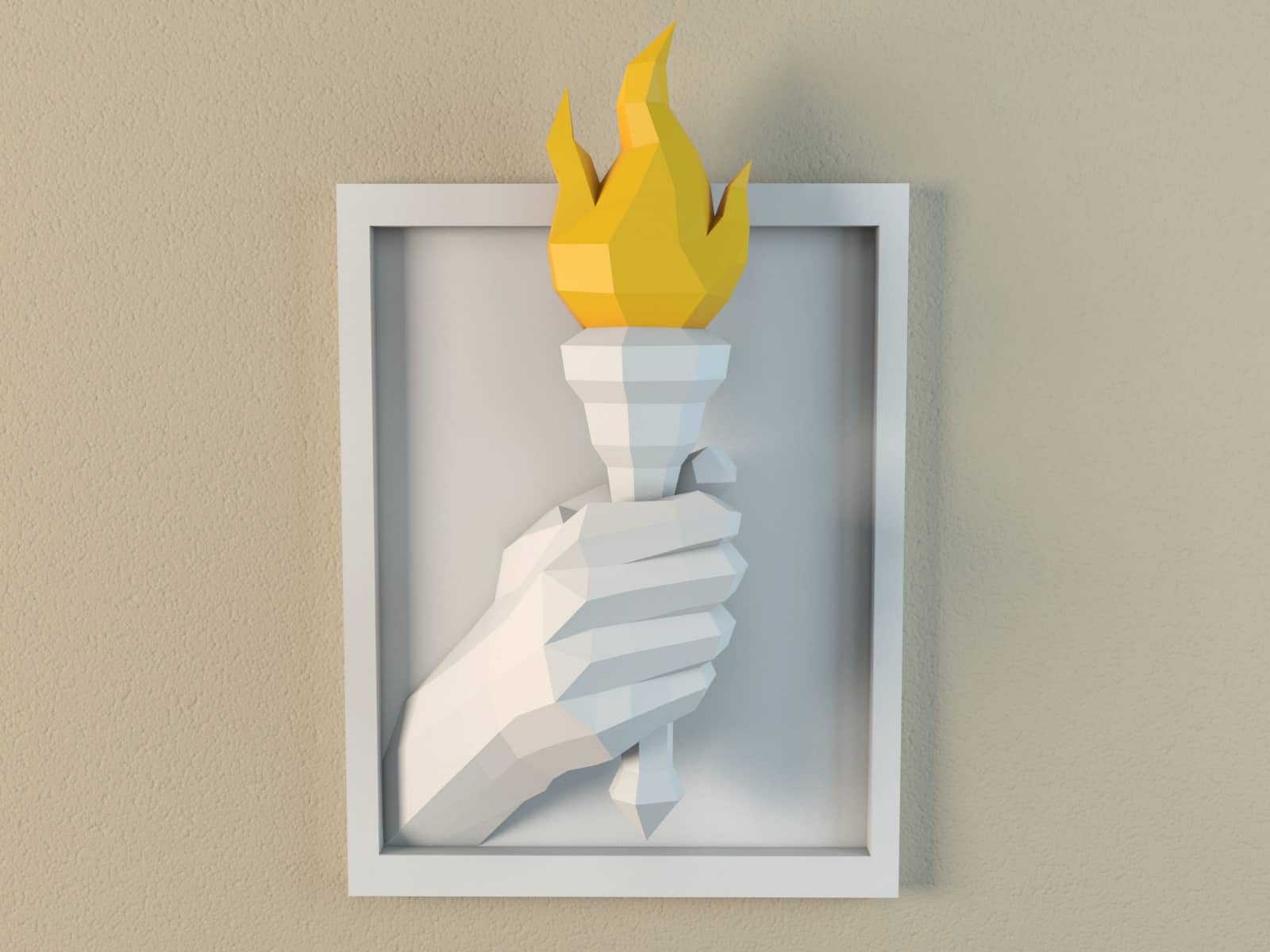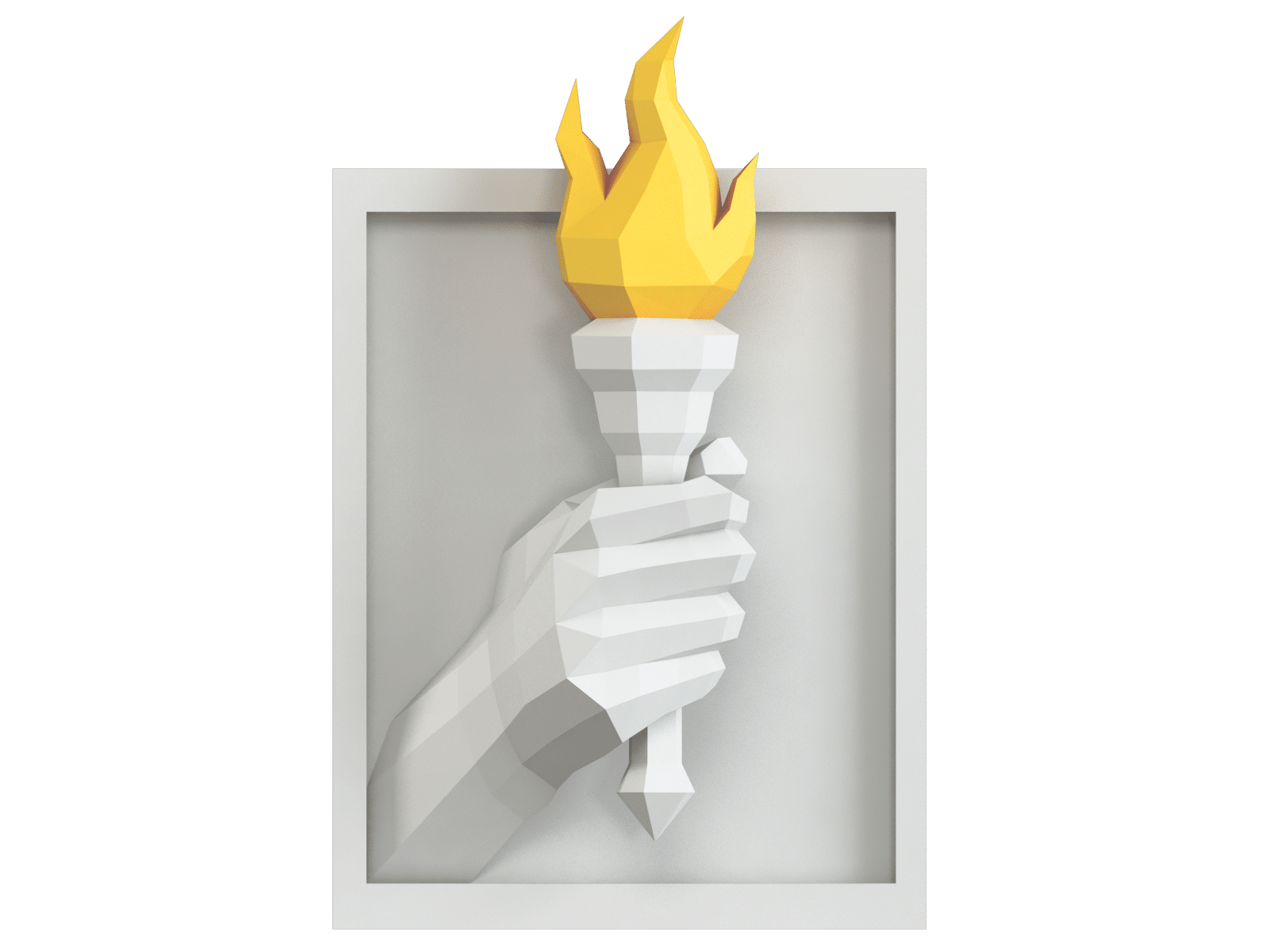 papercraft 3D, affiche en relief et manifeste graphique, cette torche incarne l’idée d’élan,