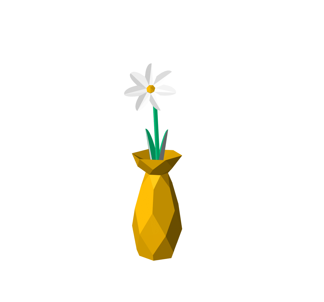 Posé sur un meuble, ce vase en papercraft 3D avec sa marguerite stylisée apporte immédiatement une note de fraîcheur et de poésie à votre intérieur. La silhouette facettée du vase, d’un jaune lumineux, contraste élégamment avec le blanc délicat des pétales et le vert tendre de la tige. Chaque facette attrape la lumière, projette une ombre subtile, et donne à l’ensemble une vraie présence visuelle, à mi-chemin entre objet design et sculpture minimaliste.