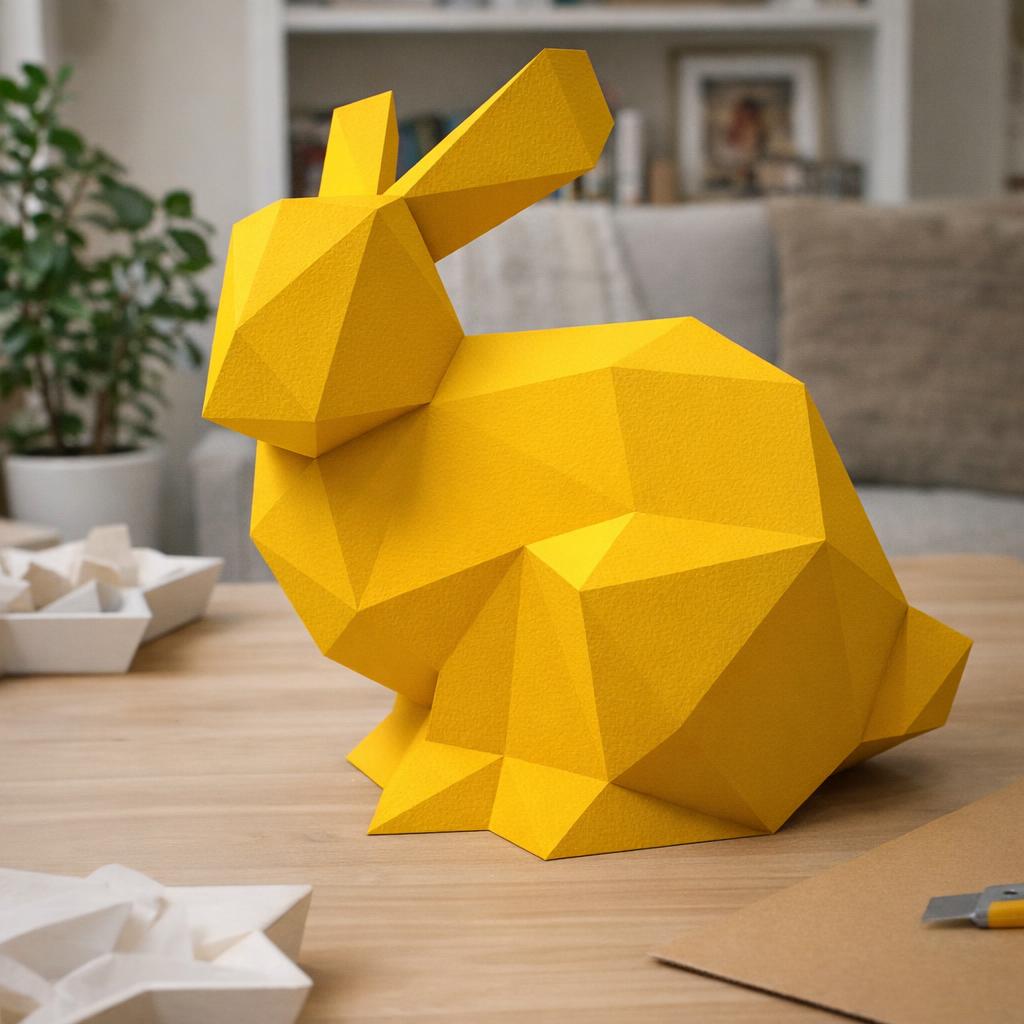 Imaginez un lièvre figé dans son élan, comme surpris au cœur d’une clairière printanière. Ce modèle en origami 3D capture ce mouvement avec des lignes nettes et une silhouette graphique, idéale pour réveiller un mur un peu sage. Une fois assemblé, le lièvre s’impose par sa présence, sans jamais alourdir l’espace.