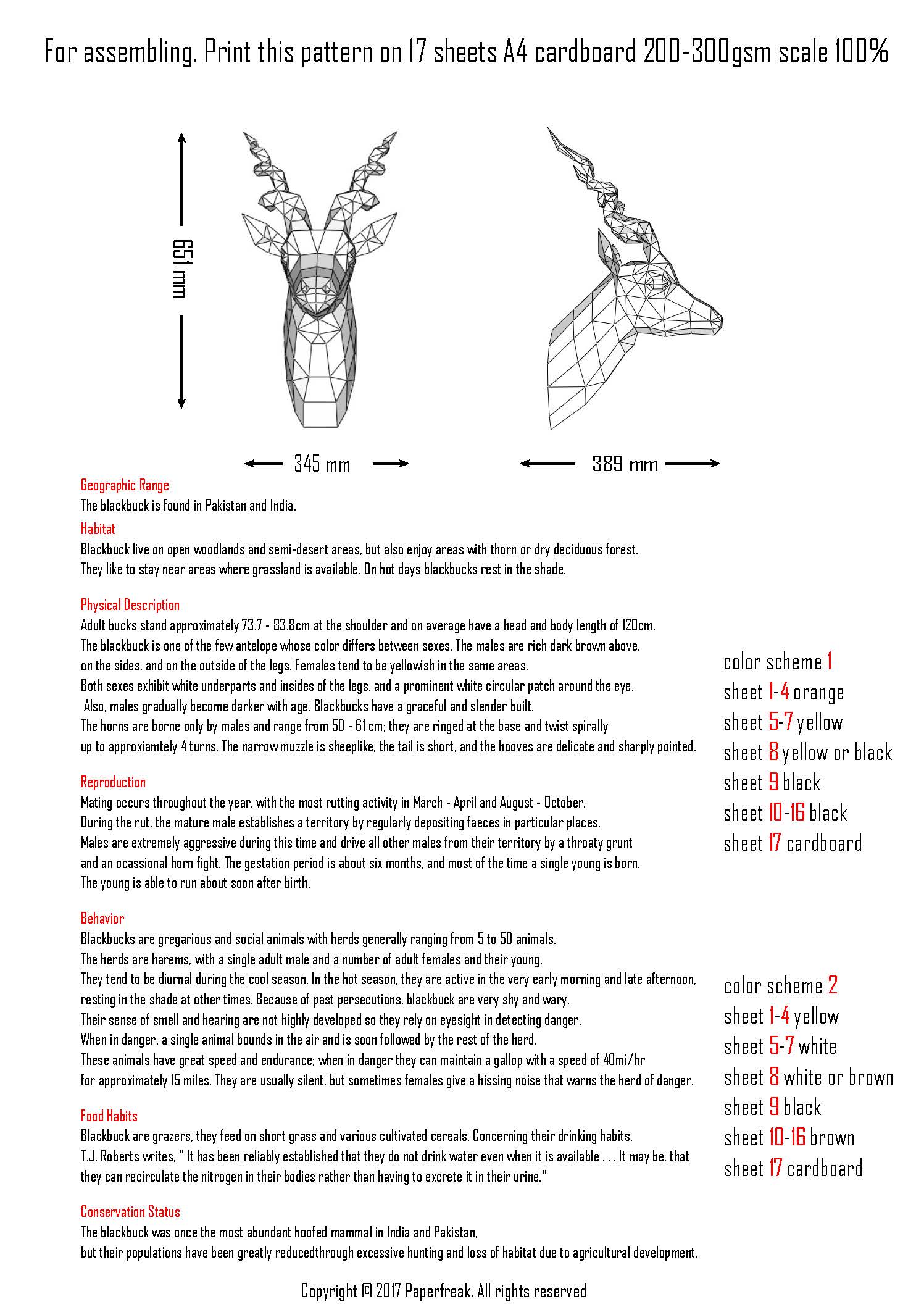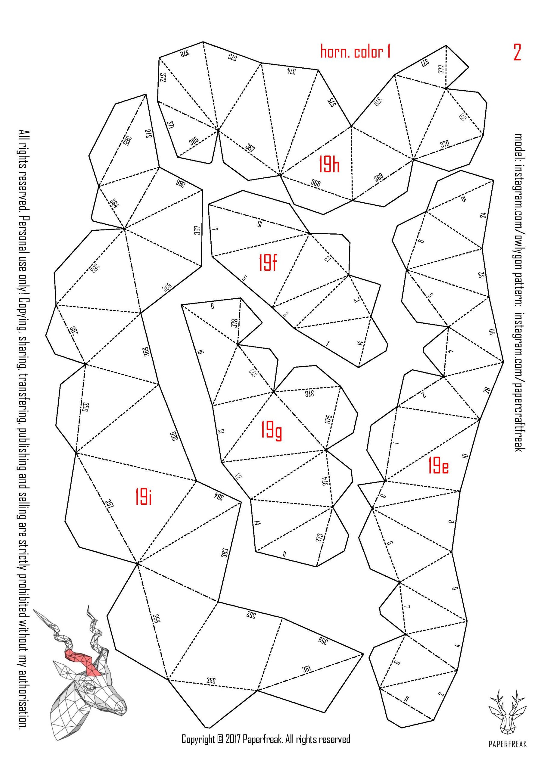 Detalhes técnicos do papercraft de antílope Blackbuck