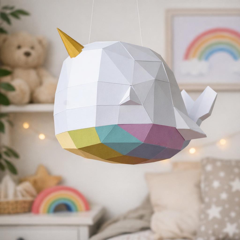 Une baleine licorne en origami 3D, entre rêve et poésie