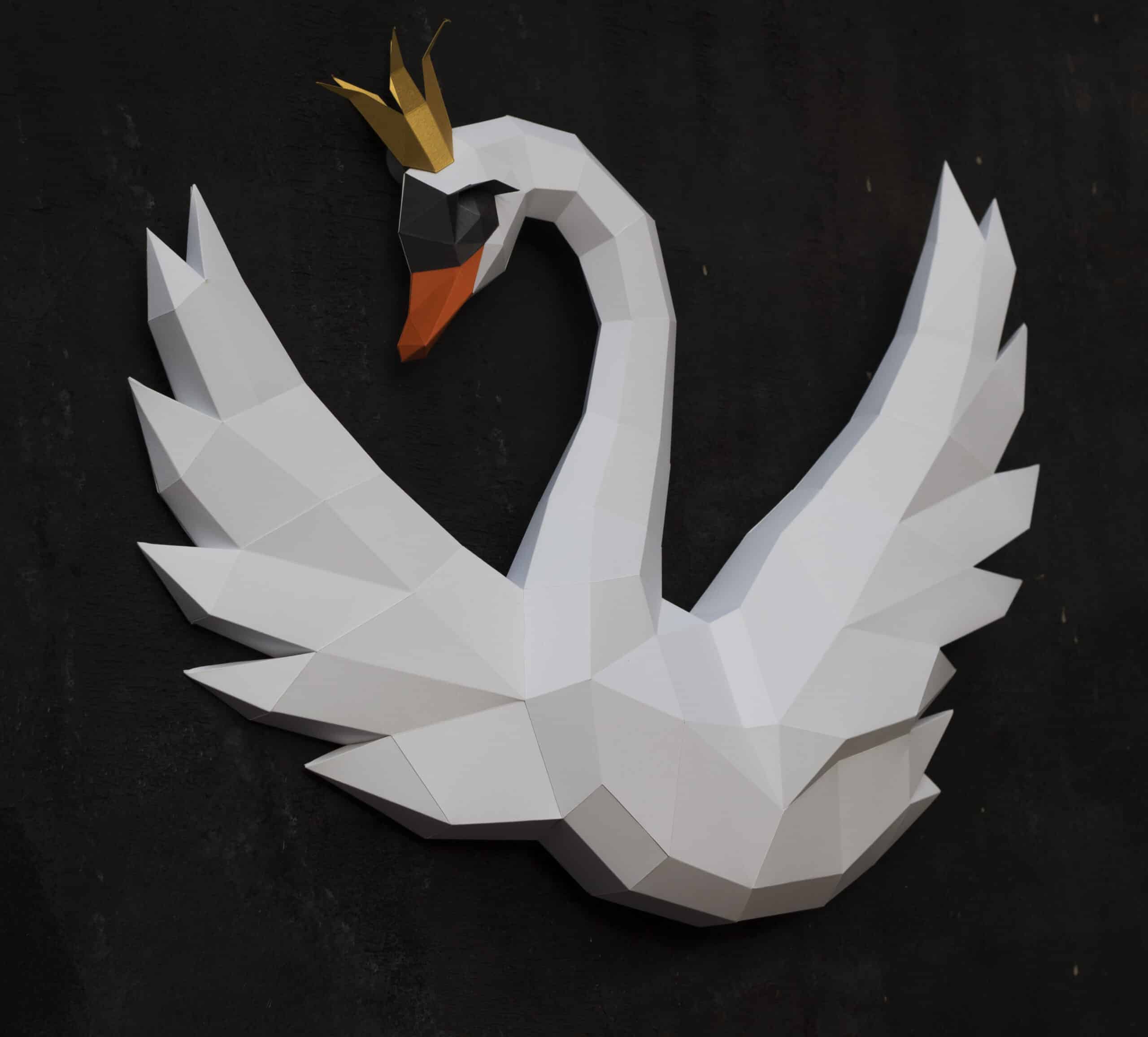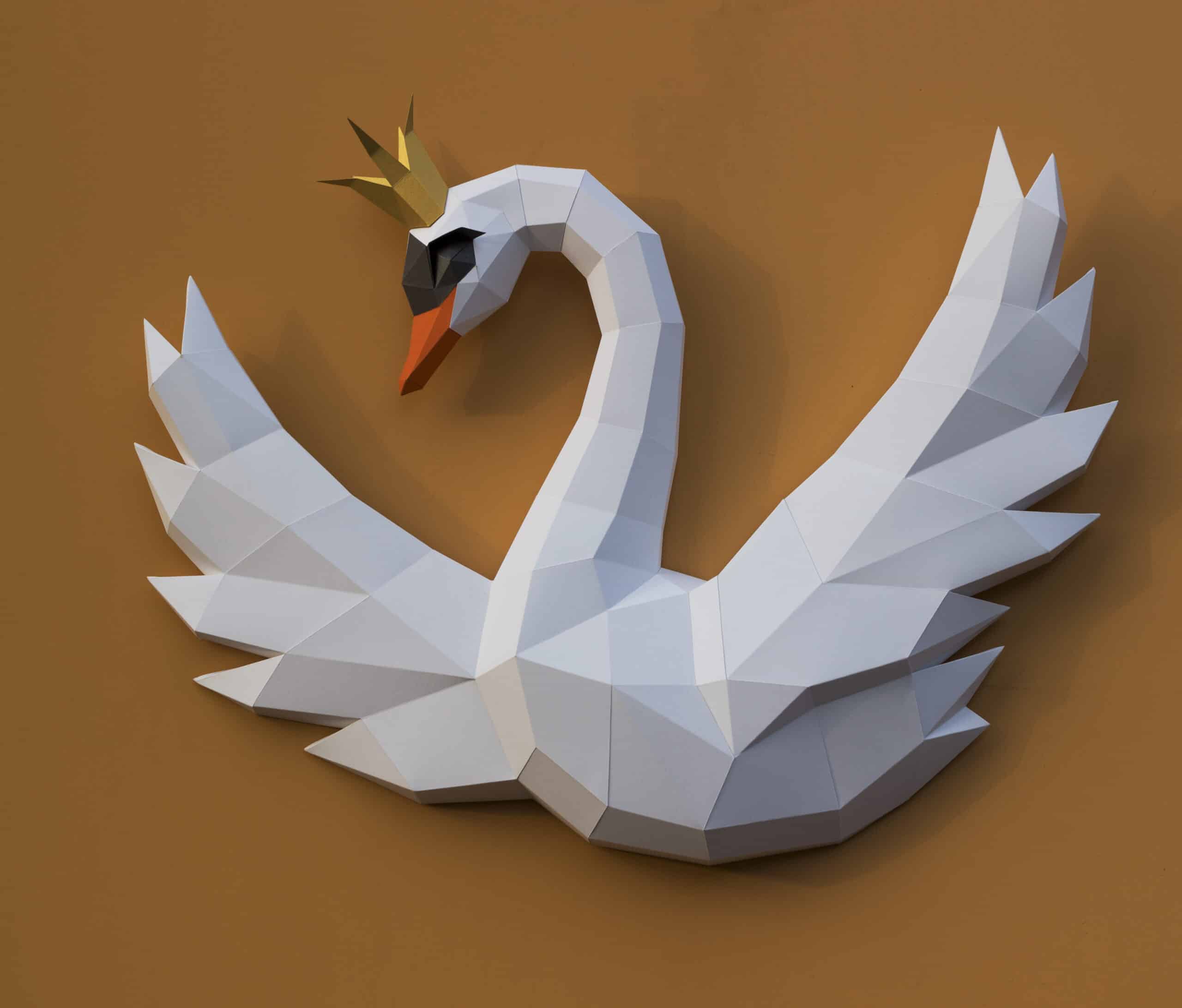 Kit papercraft cisne com coroa em origami 3D: formato digital ou box completa