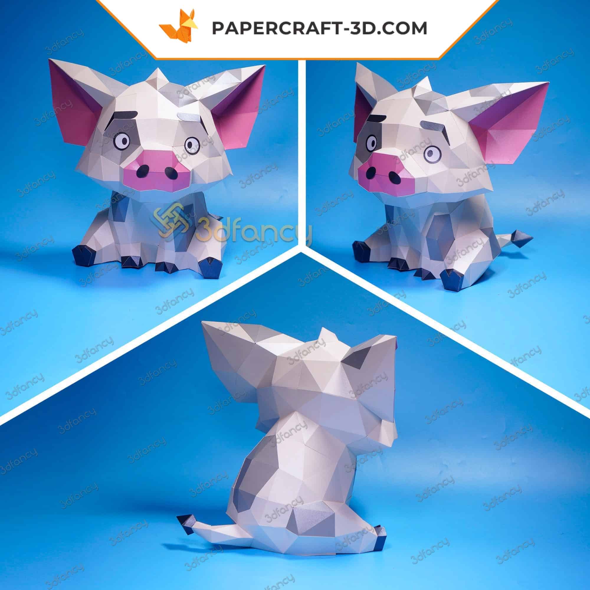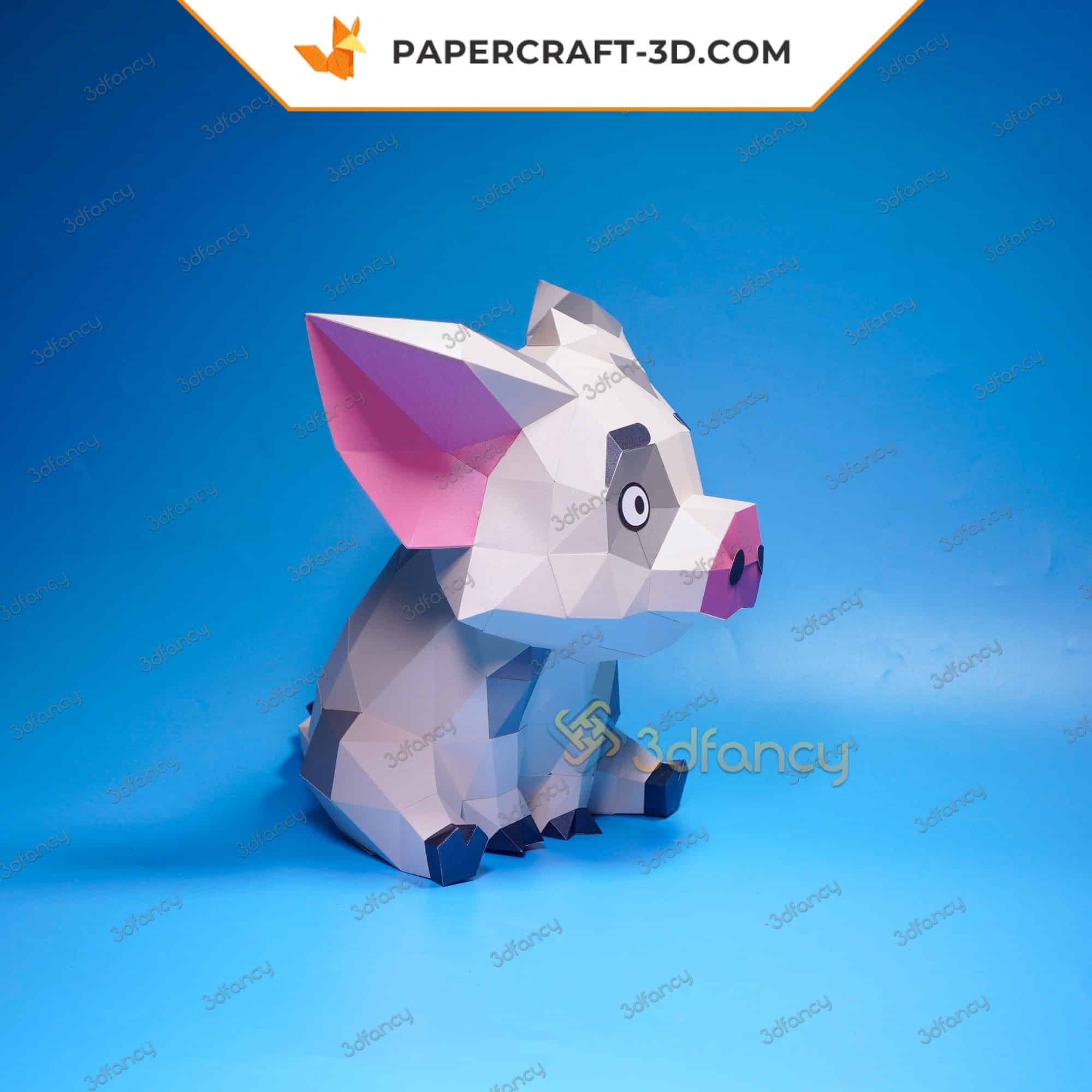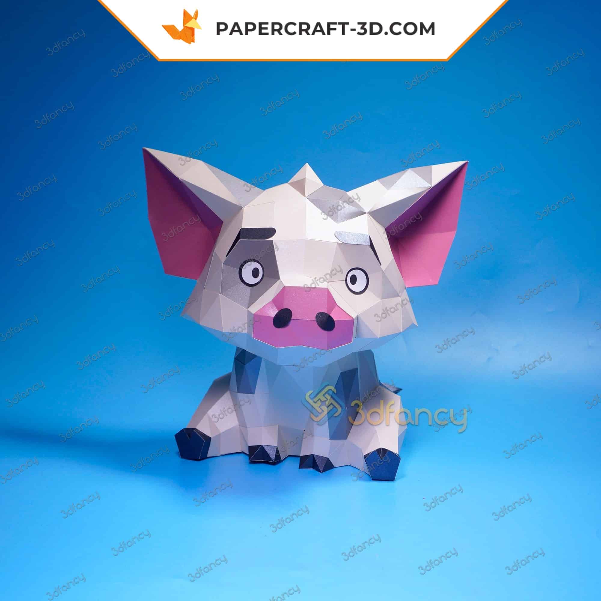 Un cochon assis en papier qui prend vie, pièce après pièce