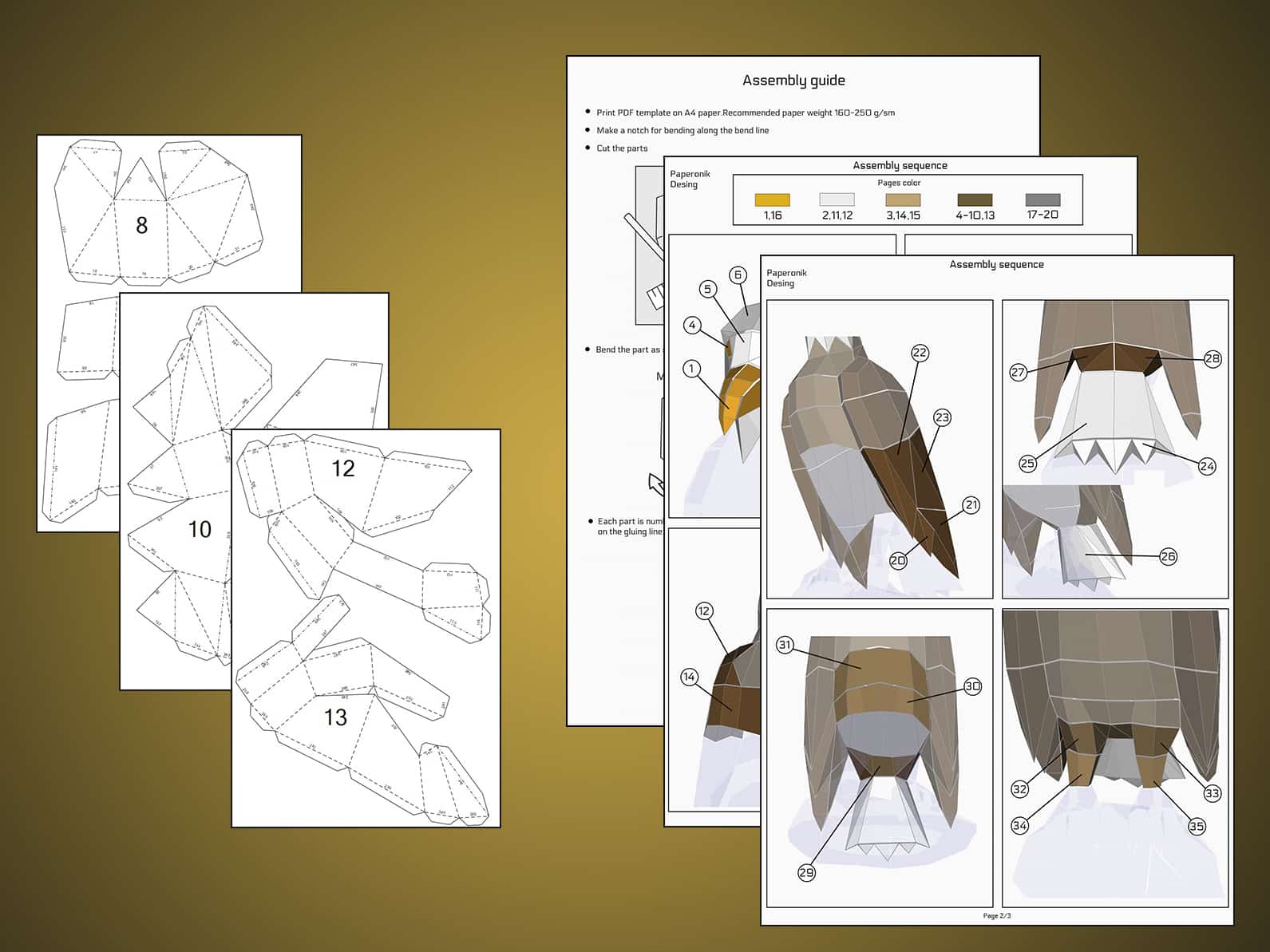 Transforme sua paixão por atividades criativas em uma obra de arte com este papercraft de águia em origami 3D. Seja você um pai buscando uma atividade educativa ou um decorador à procura de peças originais, este modelo é feito para você. Não espere mais, adicione esta magnífica águia à sua coleção e sinta o orgulho de criar algo com suas próprias mãos.