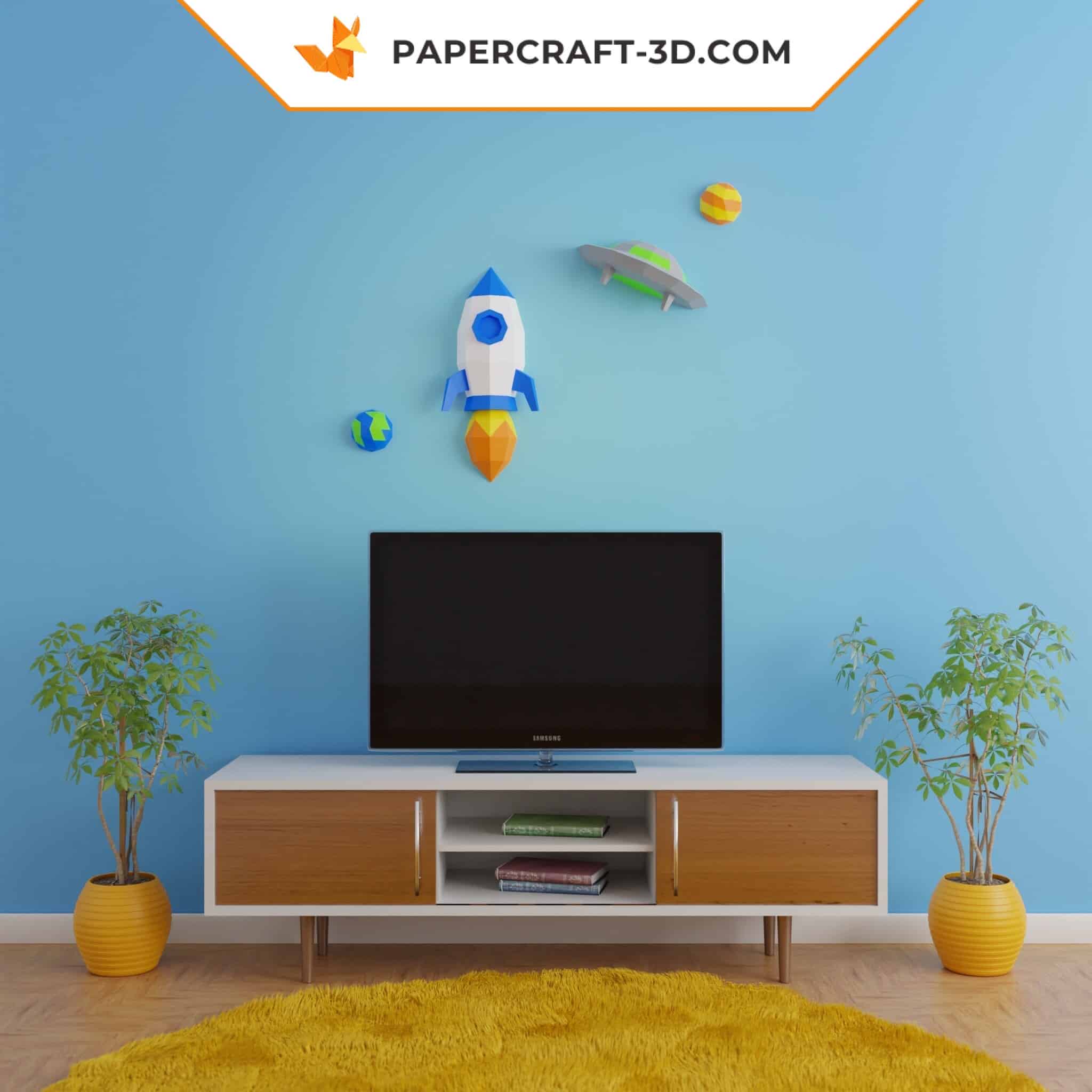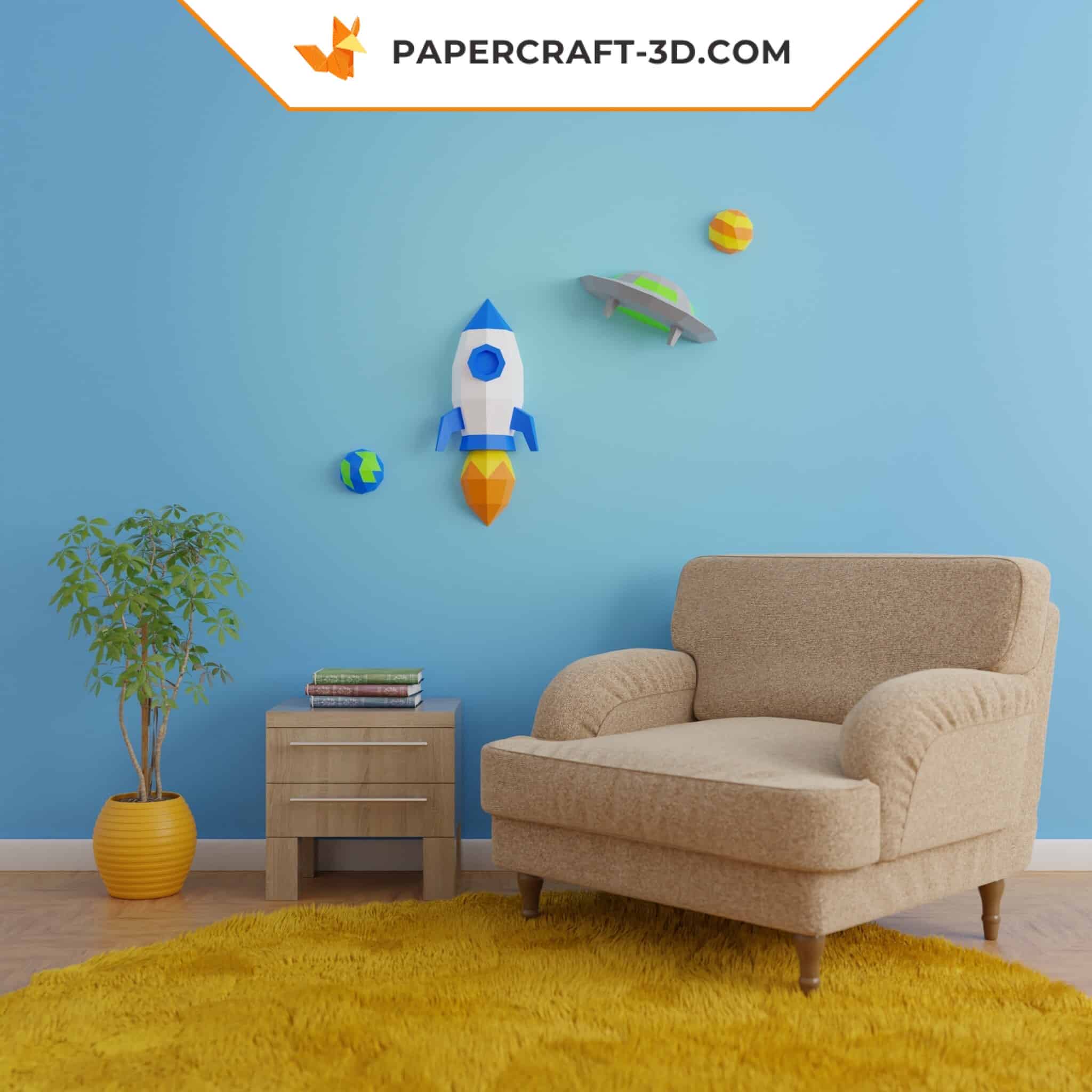 Uma noite estrelada, crianças sonhando com aventuras espaciais… Pense na alegria delas ao ver um foguete e um disco voador em origami 3D decorando o quarto. Este papercraft exclusivo transforma qualquer parede simples em uma cena cósmica envolvente, despertando a curiosidade e a imaginação. Perfeito para pequenos astronautas ou para quem busca uma decoração de parede original, este modelo DIY convida você a explorar o espaço sem sair de casa. Descubra nossa coleção completa de papercrafts 3D para parede e inspire-se ainda mais.