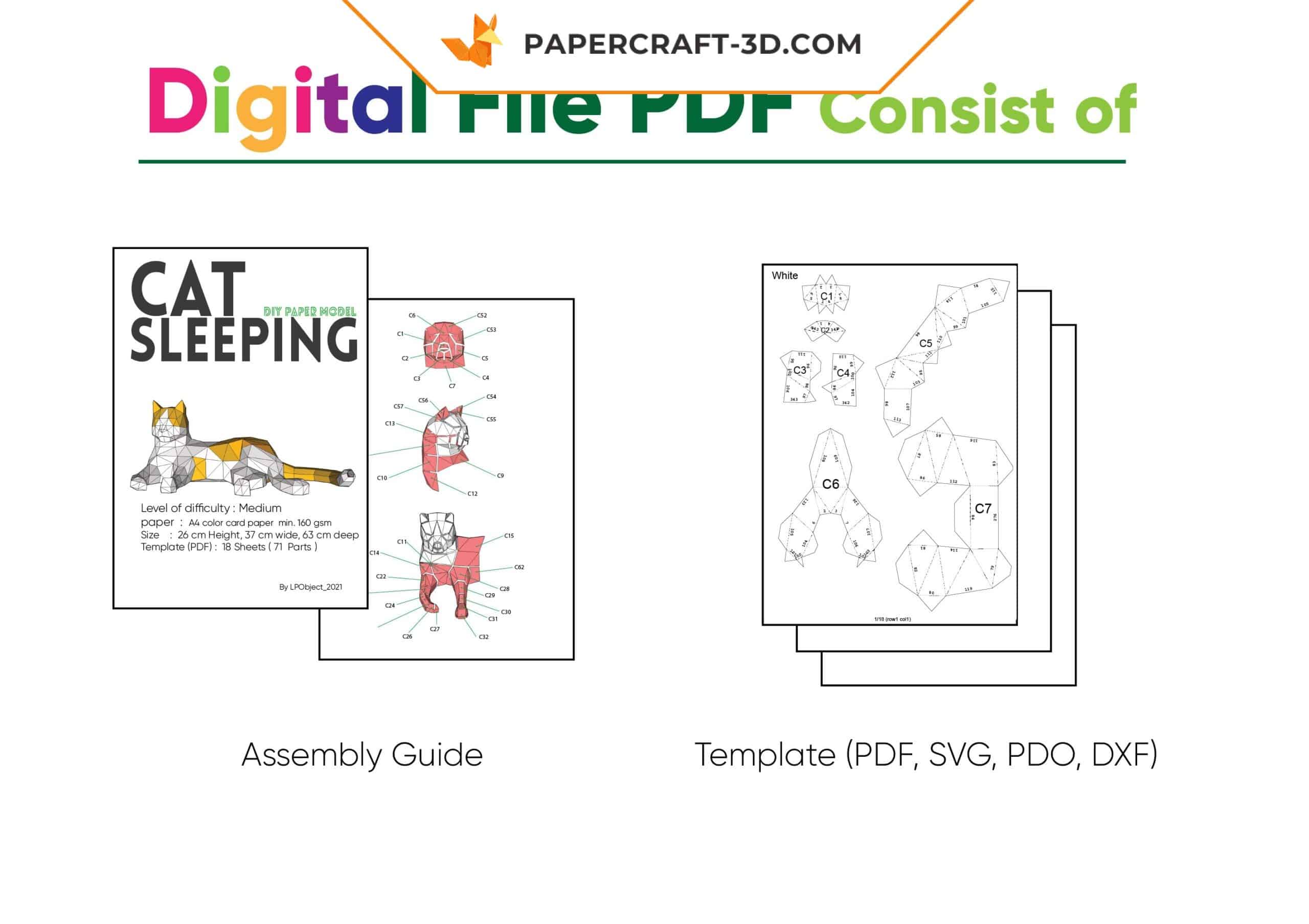 Características técnicas do papercraft de gato dormindo