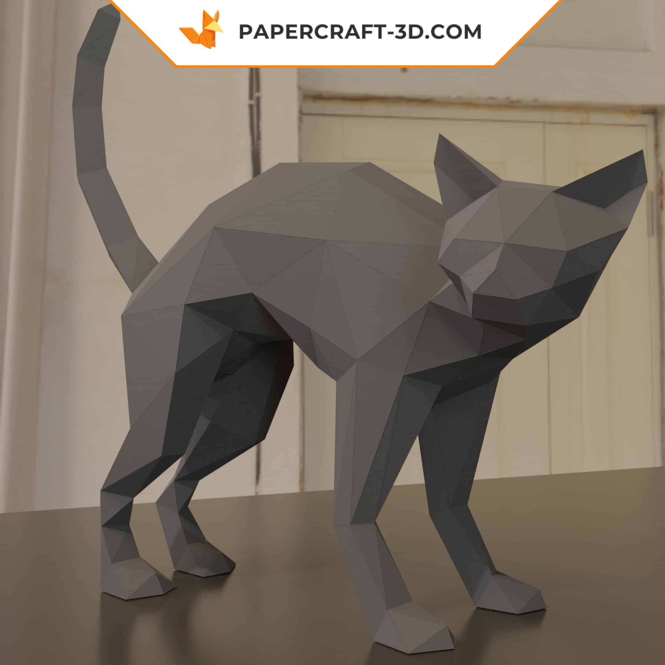 Imersão no universo fantástico do papercraft com o gato origami 3D, a estrela do Halloween