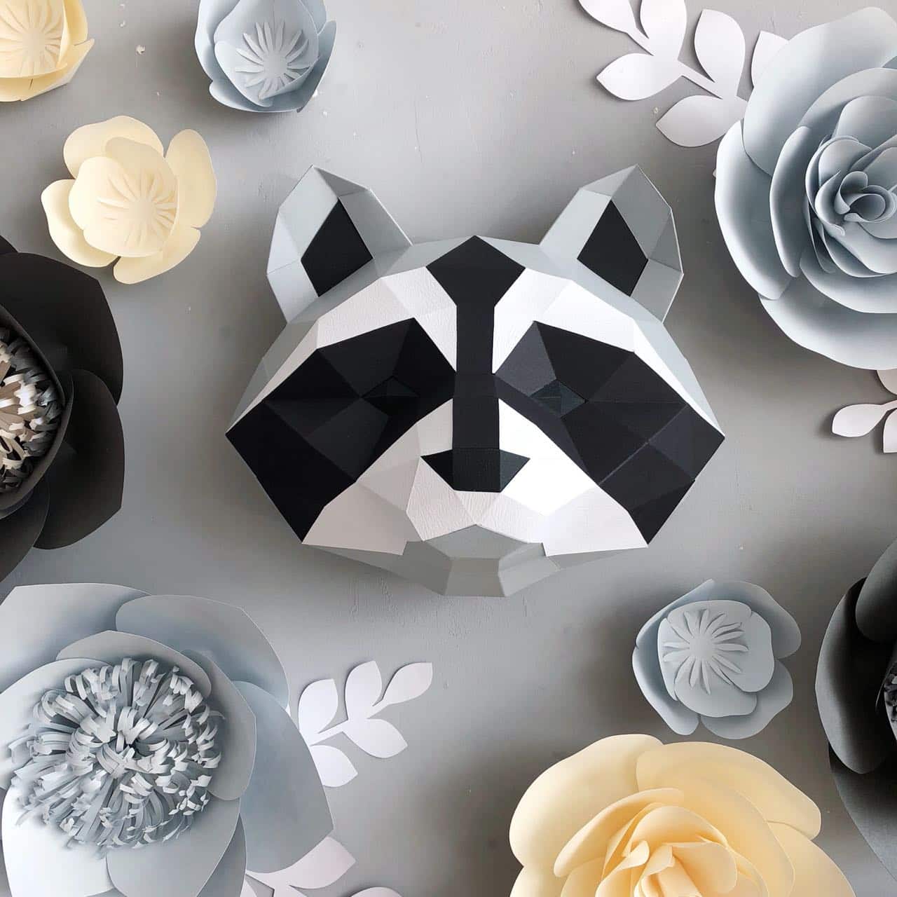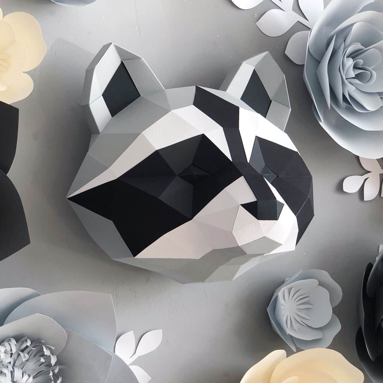 Kit papercraft cabeça de guaxinim em origami 3D: digital ou completo