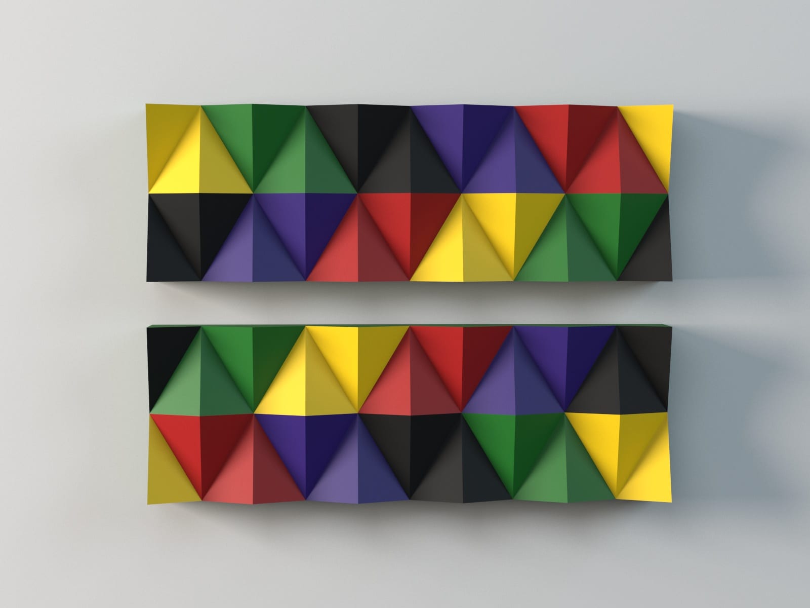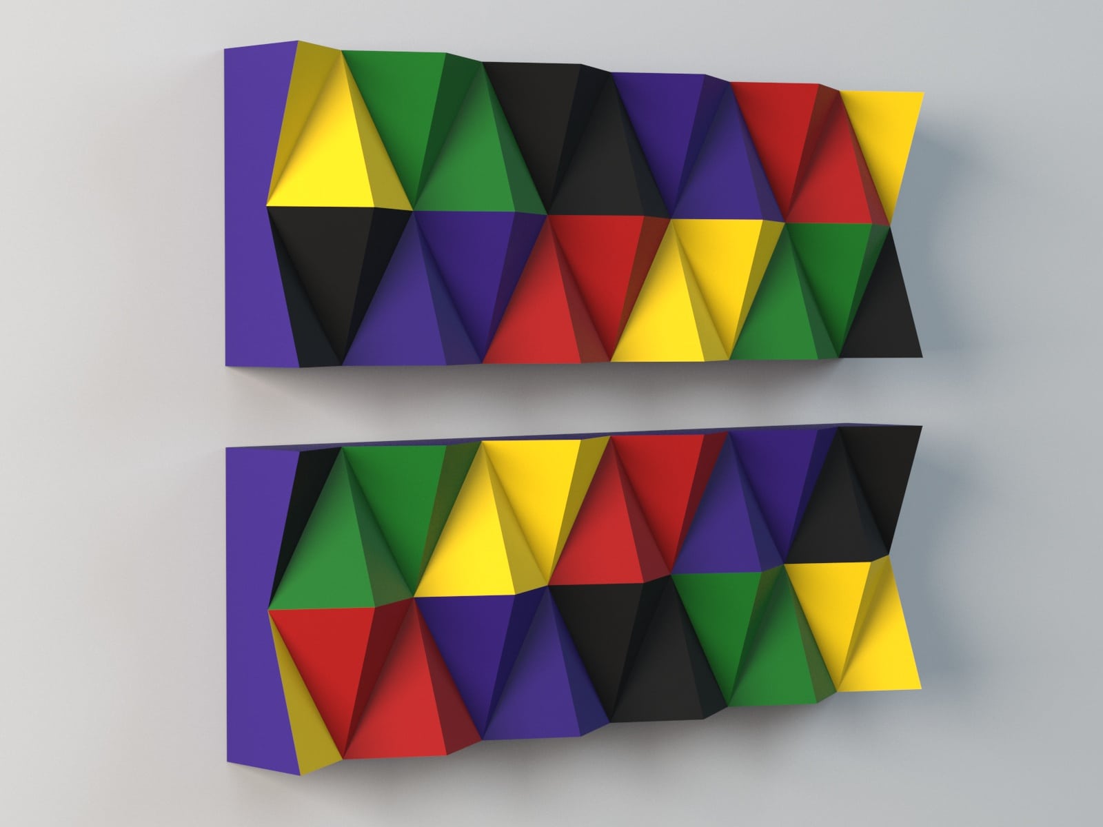 Adicione um toque de arte e modernidade às suas paredes com este incrível papercraft de painel de parede geométrico em origami 3D. Composto por formas geométricas vibrantes e elegantes, ele se torna o destaque da decoração, trazendo energia e sofisticação para qualquer ambiente da sua casa ou escritório.