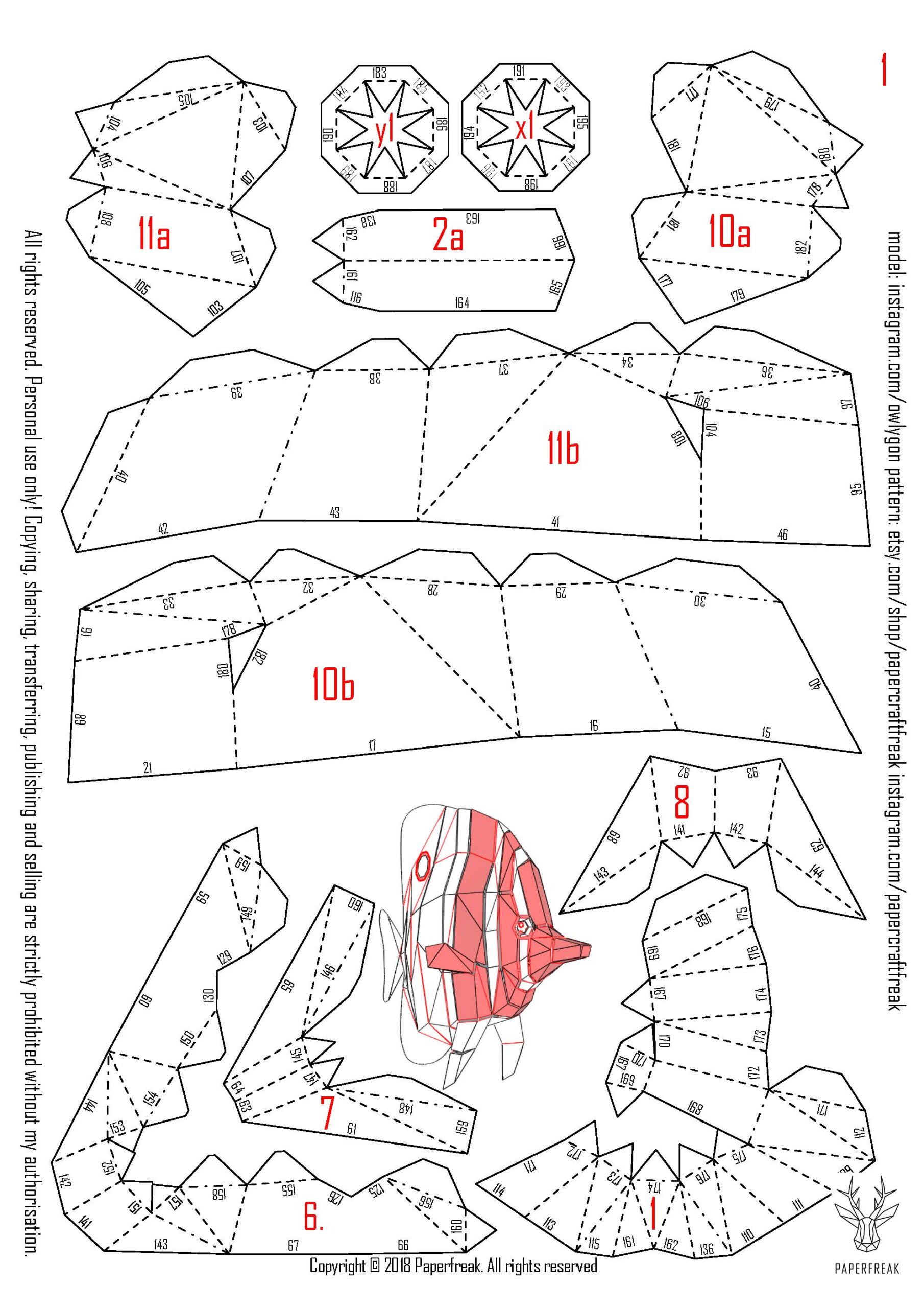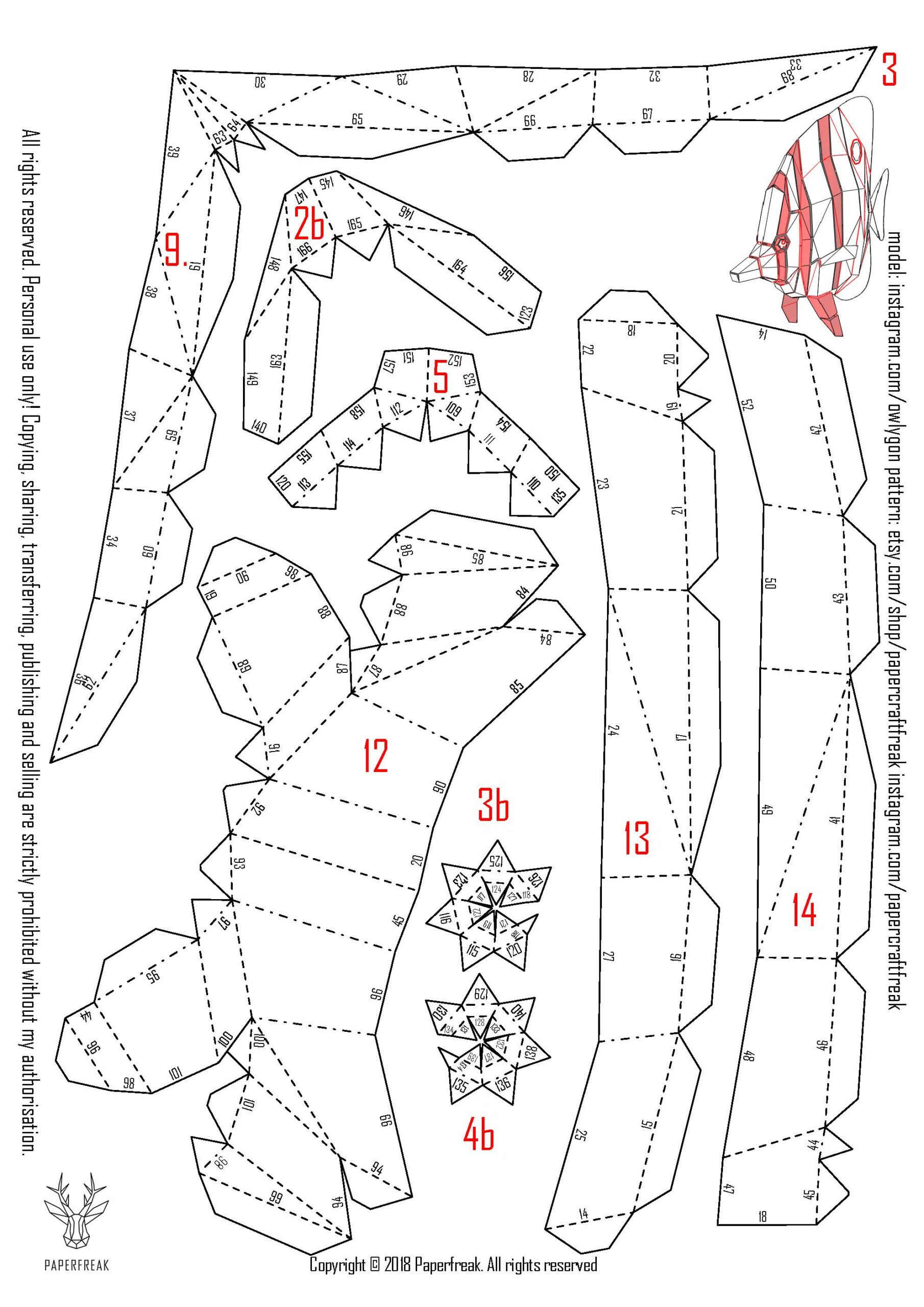 Dois formatos para o papercraft de peixe-borboleta em origami 3D