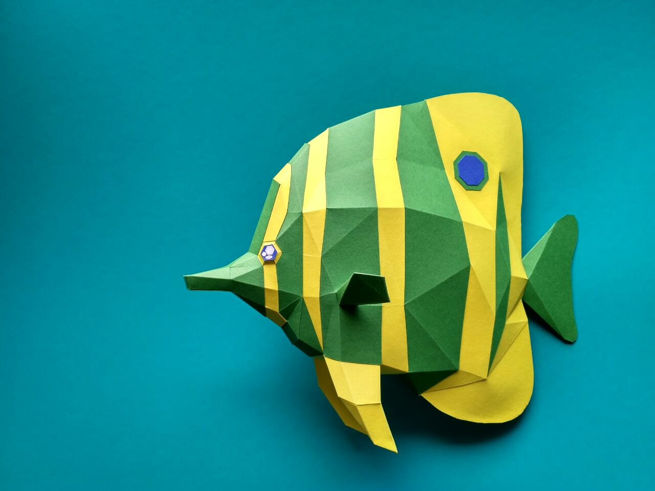 Explore o mundo subaquático com o papercraft de peixe-borboleta em origami 3D