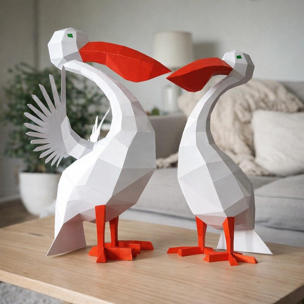 Imaginez un instant. Le calme d’un rivage, l’air immobile, et deux pélicans qui semblent suspendus dans le temps. Ce papercraft de pélicans en origami 3D vous invite à recréer cette scène chez vous, feuille après feuille, pli après pli.