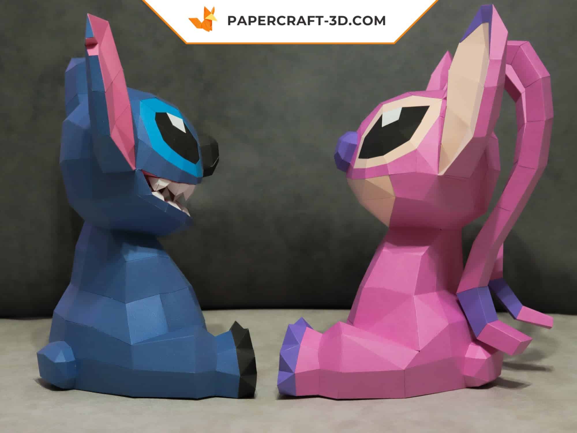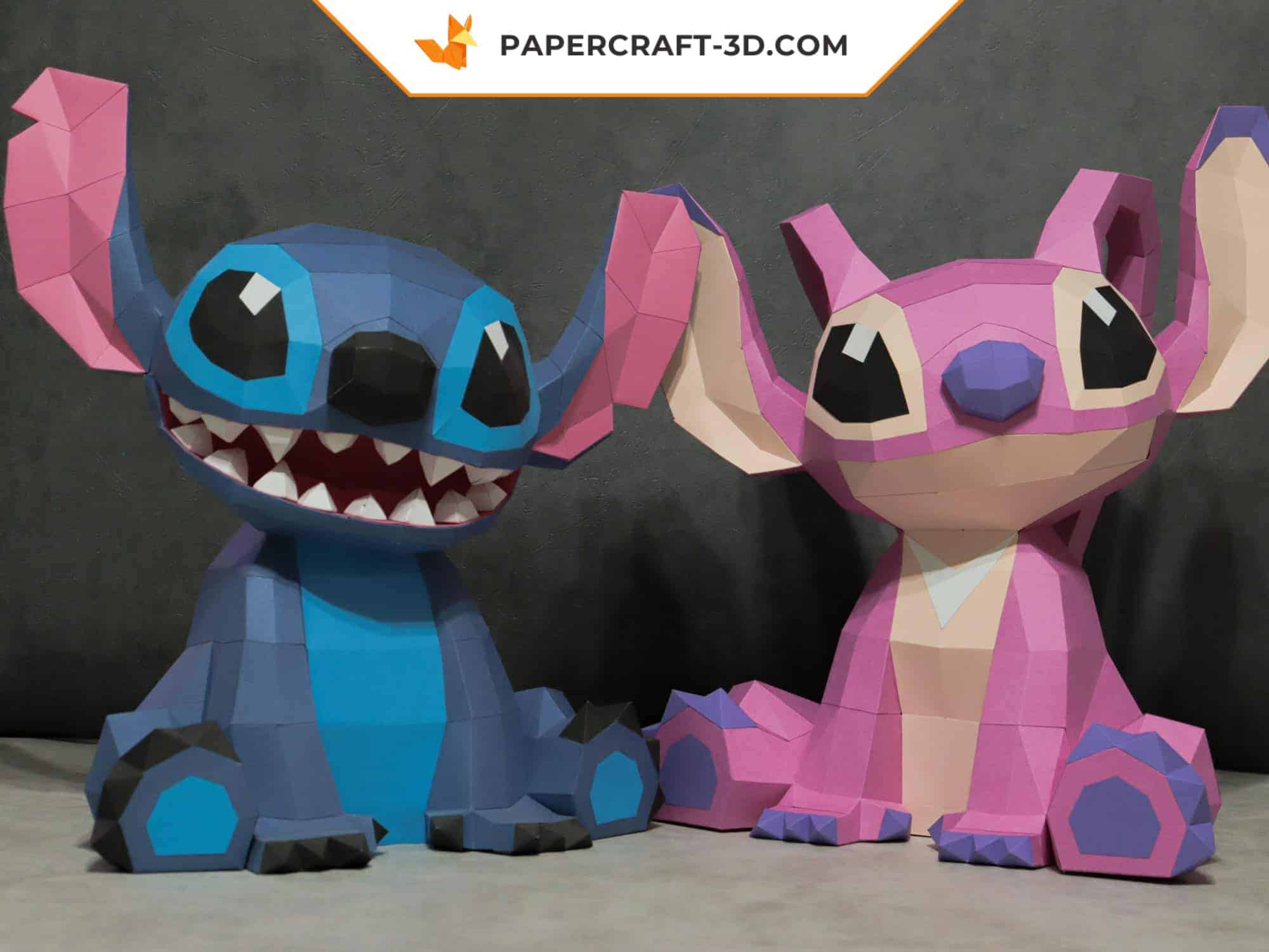 Papercraft de Stitch en origami 3D à assembler chez vous, composé de 14 pages et donnant naissance à une figurine expressive et décorative. Une fois monté, le modèle atteint 400 mm de hauteur pour 381 mm de largeur et 219 mm de profondeur.