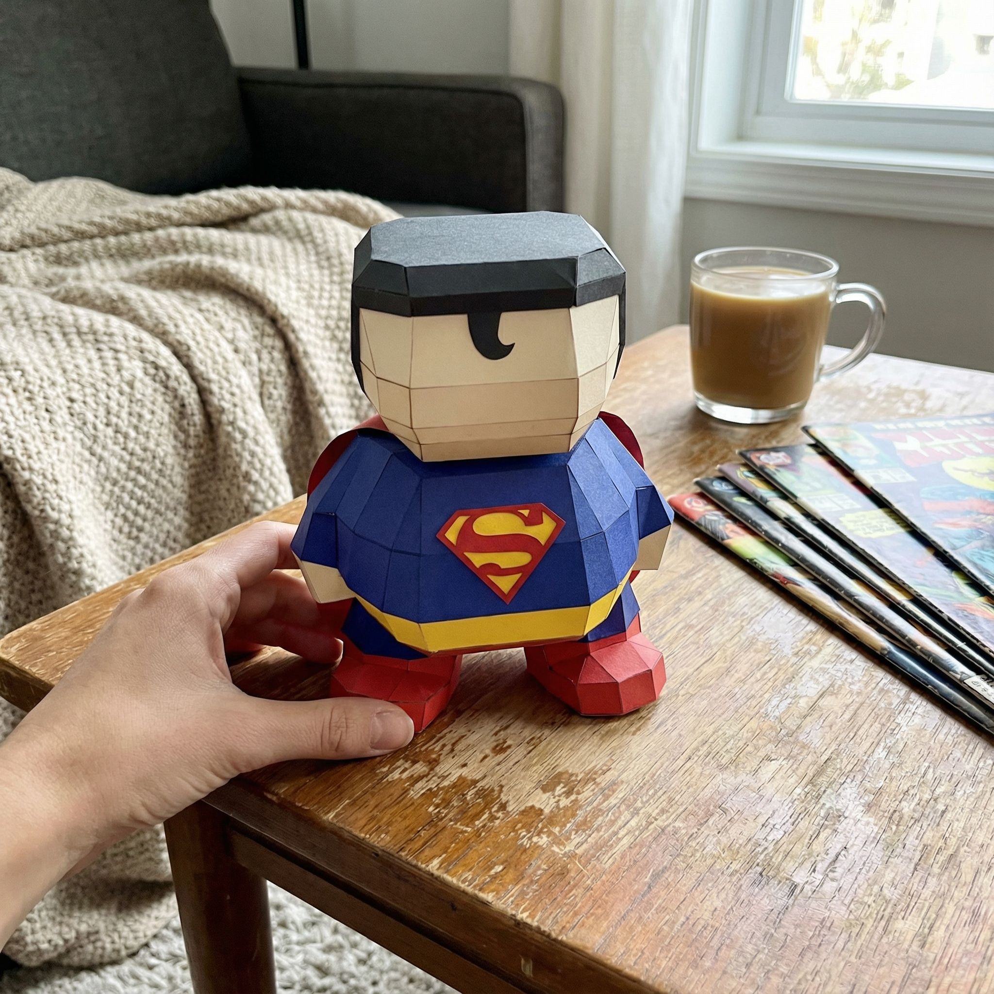 Tout commence par quelques feuilles, un peu de patience… et l’envie de voir naître un mythe. Ce Superman low poly en origami 3D se construit pas à pas, jusqu’à révéler une silhouette compacte, presque attendrissante, mais immédiatement reconnaissable. Une fois posé sur une étagère, il attire l’œil. Et souvent, la question tombe : « C’est vous qui l’avez fait ? »