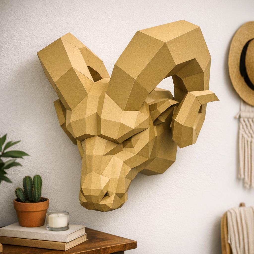 Un regard franc, des cornes puissantes, une présence qui s’impose. Cette tête de bélier en origami 3D transforme un simple mur en véritable scène décorative. On l’imagine déjà dans un salon contemporain, un bureau inspirant ou une entrée qui ne passe pas inaperçue. Chaque pli raconte la force de l’animal, chaque facette capte la lumière différemment.