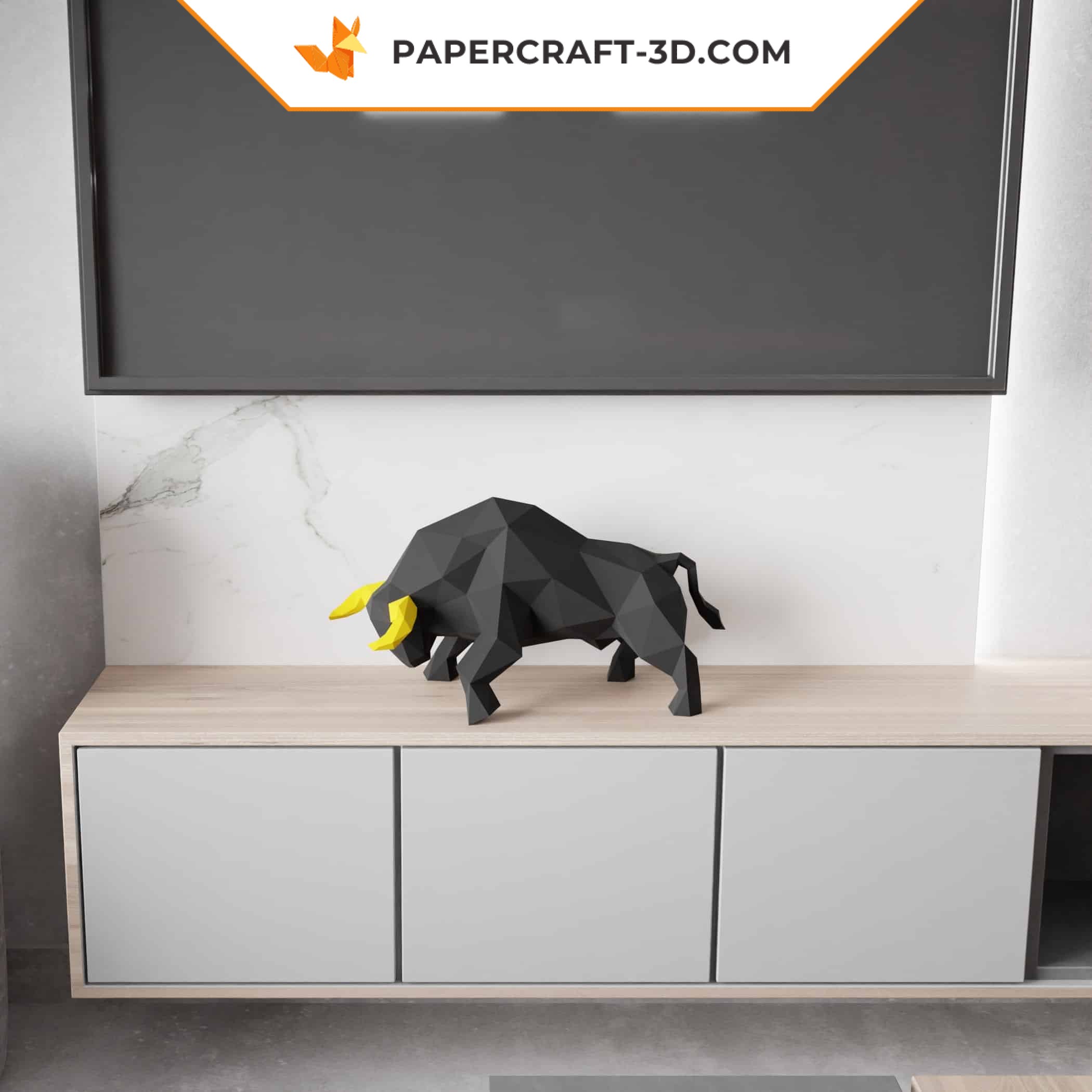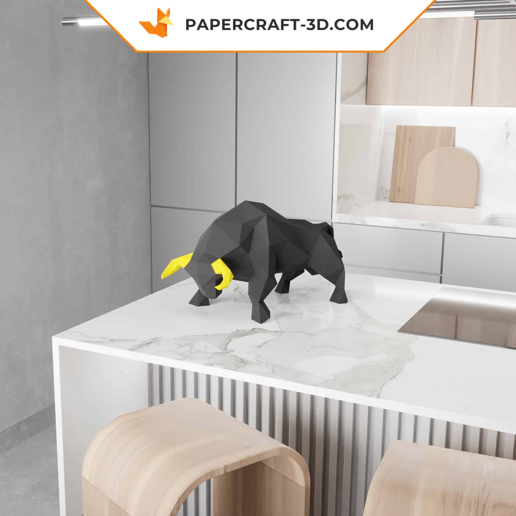 Papercraft touro negro em origami 3D: escolha entre kit digital ou box completa