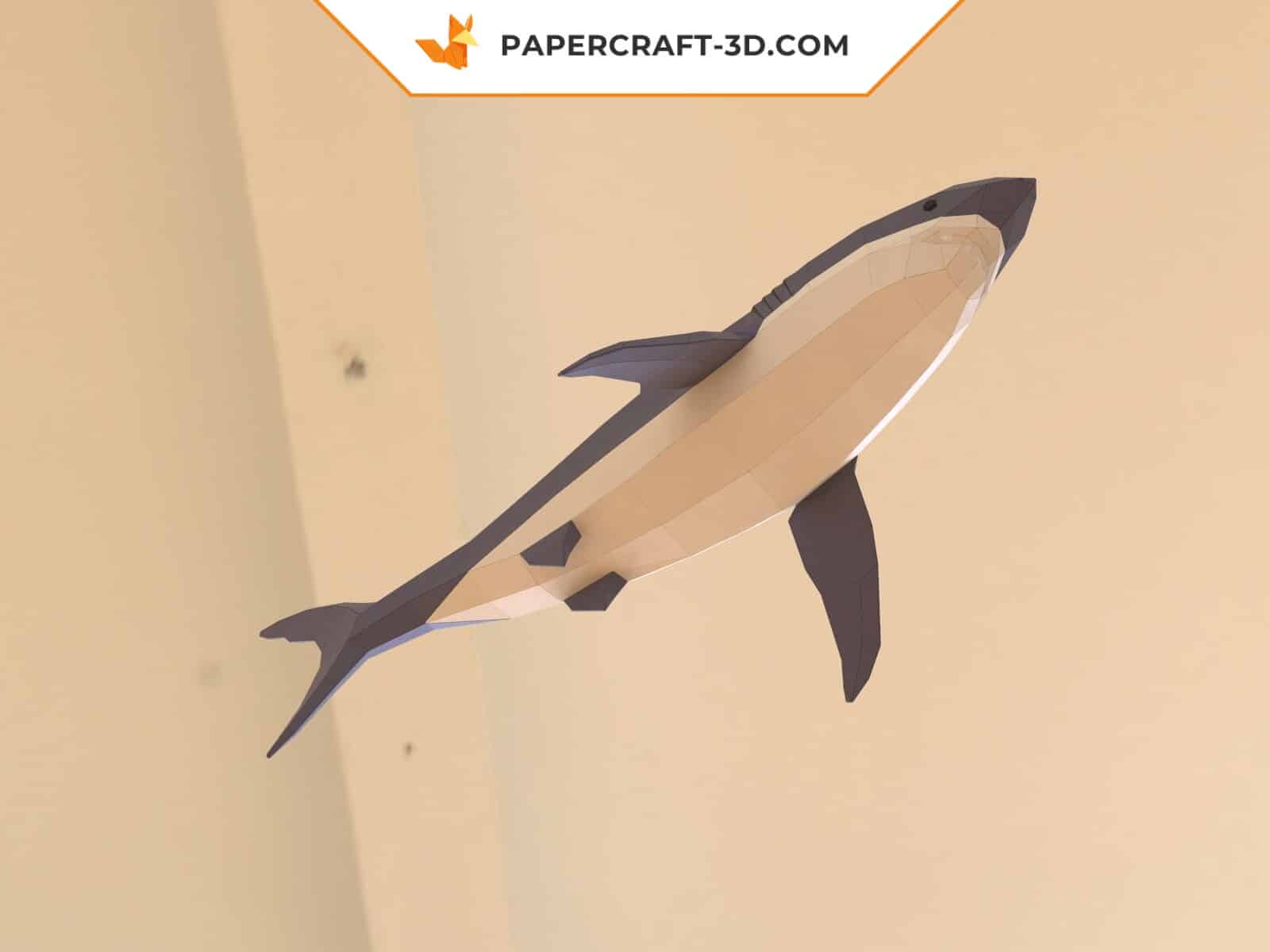 Características técnicas: papercraft de tubarão azul em origami 3D