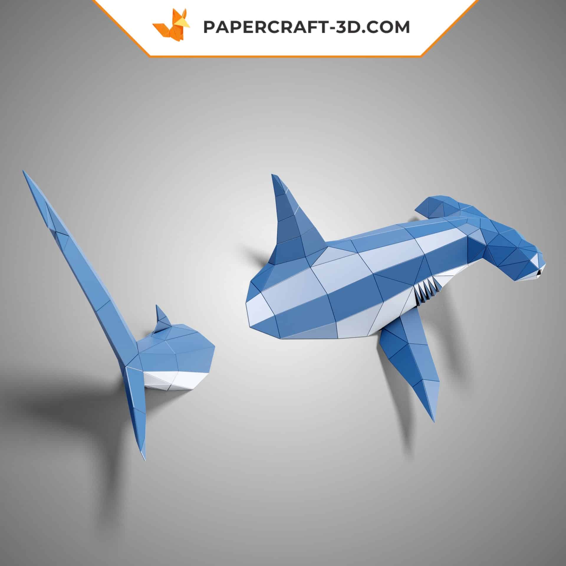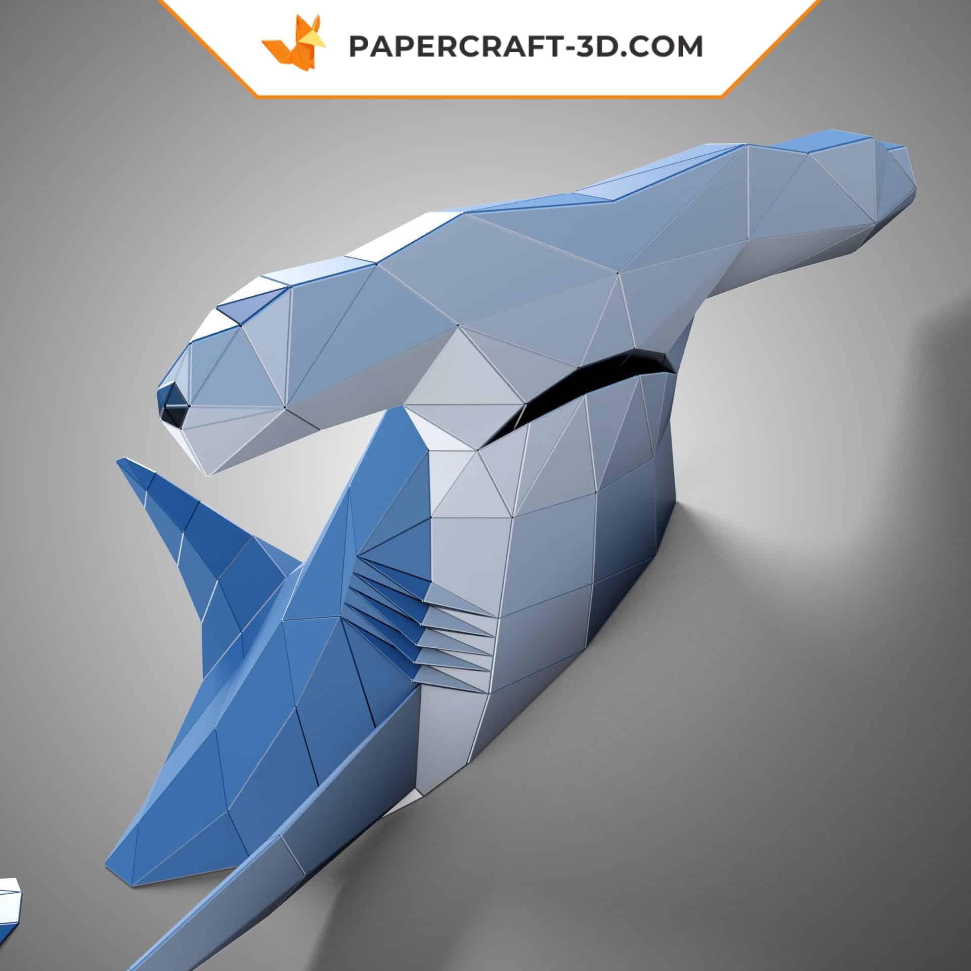 Kit papercraft de tubarão-martelo em origami 3D: dois formatos disponíveis