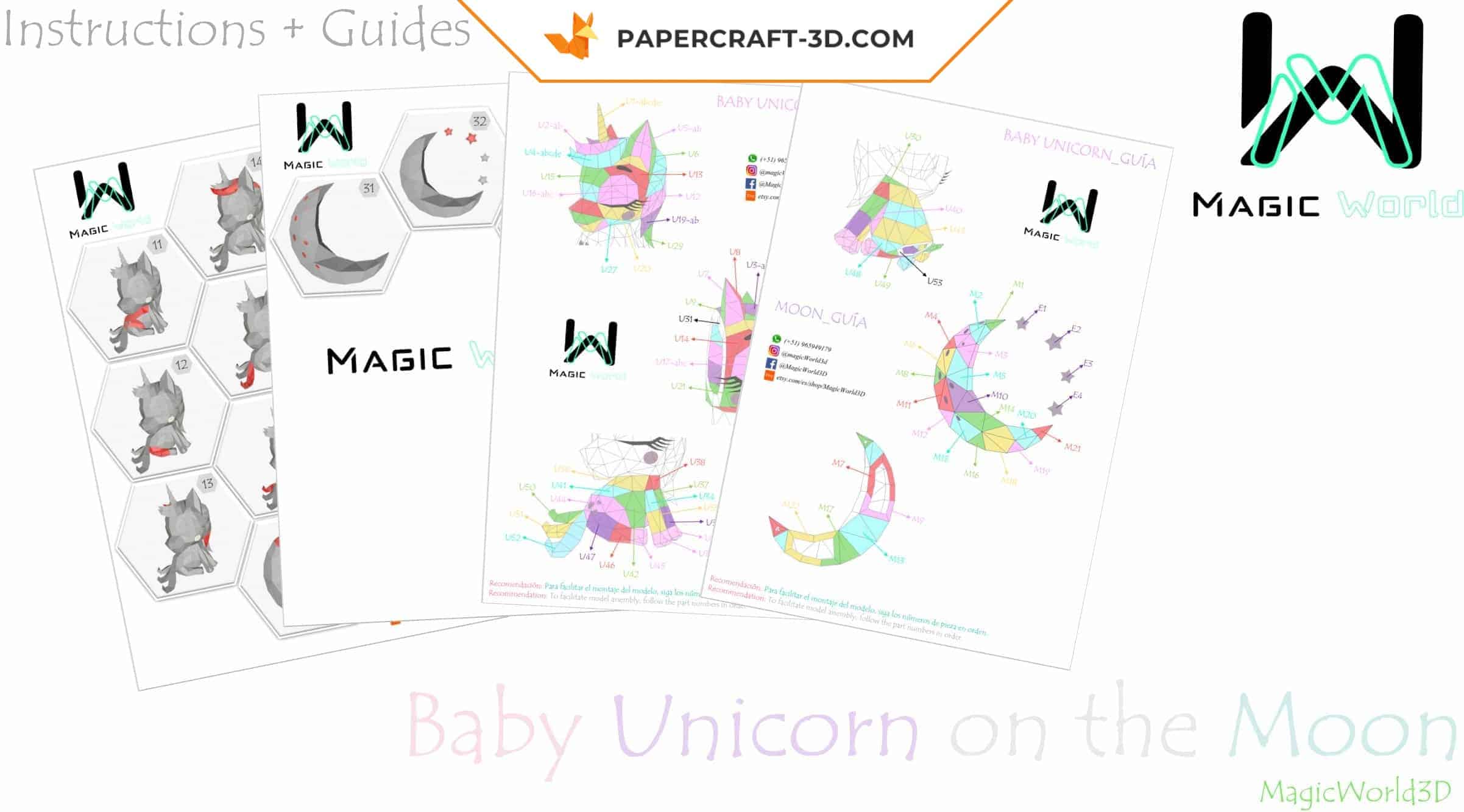 Características técnicas do papercraft unicórnio na lua em origami 3D